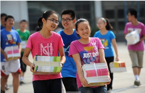 2014年继续免除城乡义务教育阶段学生学杂费并补助学校公用经费;继续向农村义务教育阶段学生免费提供国家课程教科书,并将《新华字典》纳入国家免费提供教科书范畴;继续补助义务教育阶段家庭经济困难寄宿生生活费;实施农村义务教育阶段学校校舍维修改造长效机制,将农村义务教育阶段学校校舍抗震加固纳入校舍维修改造长效机制;加强村小学和教学点经费保障工作;完善民办学校义务教育学生享受义务教育经费保障政策。 图为合肥庐阳区第45中学2013年9月新学期开学学生领取免费教学课本场景。