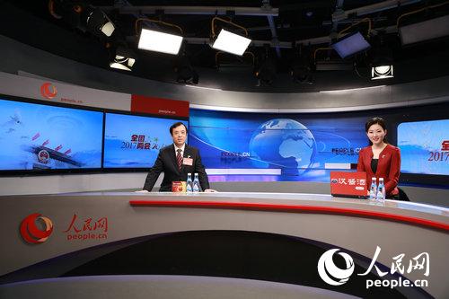 全国人大代表、安徽省财政厅厅长罗建国(左)和主持人在人民网演播室。