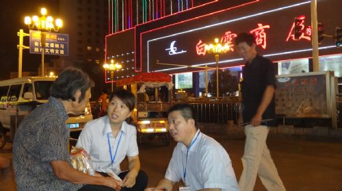 2014年继续以满足流浪乞讨人员、孤儿等特殊困难群体救助为目标,健全工作机制,完善工作制度,切实保障流浪乞讨人员、孤儿基本生活权益。基本建立起流浪乞讨人员救助管理工作体系,实现城镇街面基本无流浪未成年人;建立孤儿基本生活保障制度。 图为滁州市救助站工作人员在市区街头询问迷路老人家庭情况并给予主动救助。